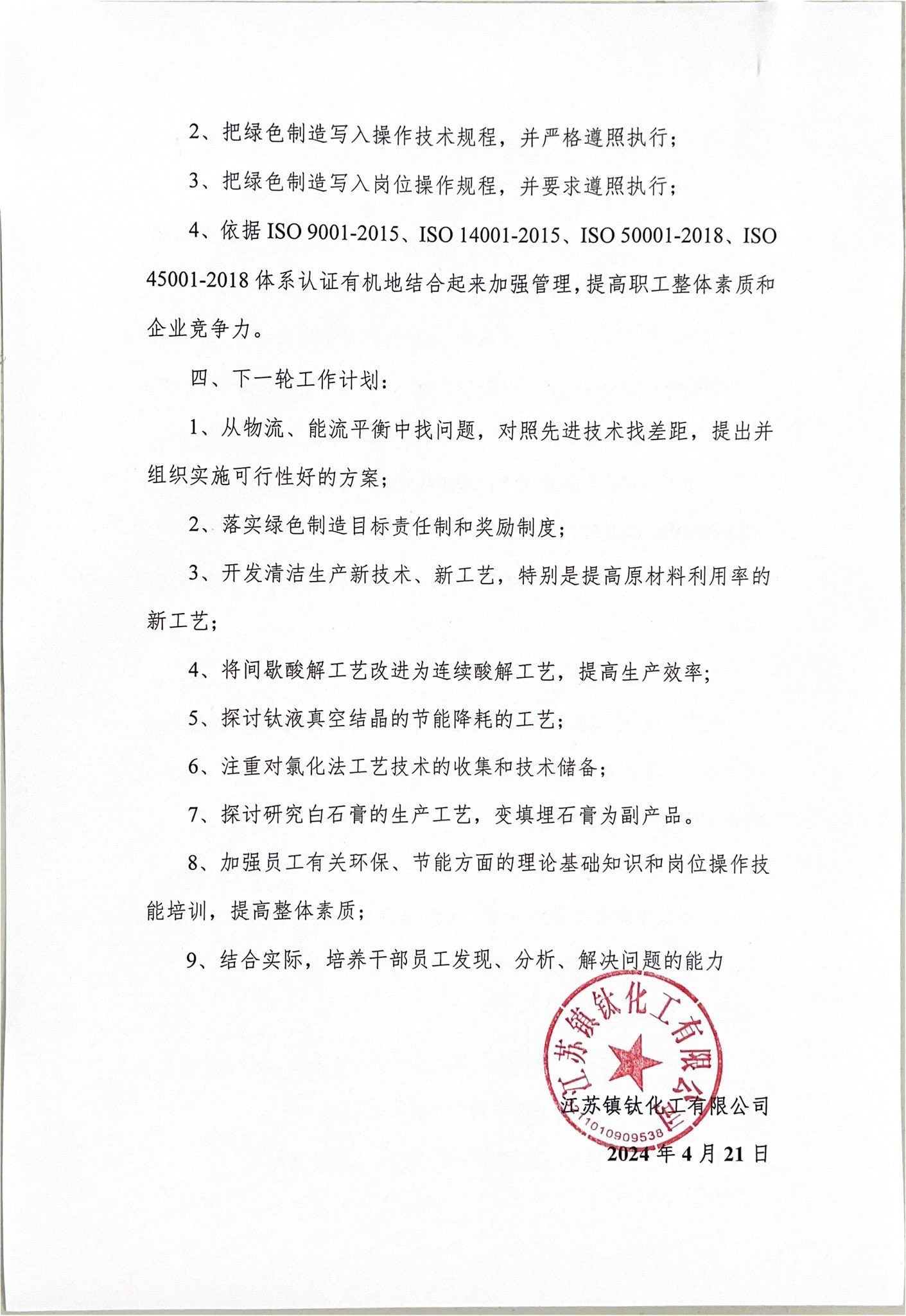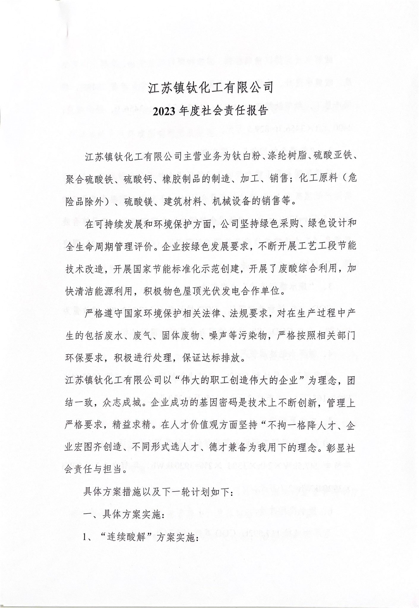 江蘇鎮鈦化工有限公司2023年度社會責任報告
